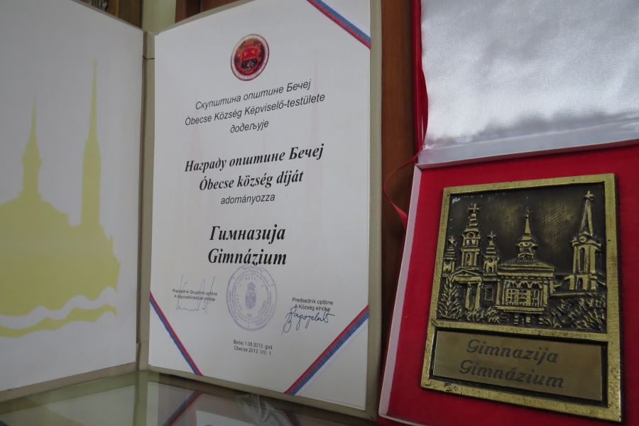 A Gimnázium a kísérleti munkája során számos jelentős elismerésben részesült: 1968-ban Óbecse községi Önkormányzatának Október 8-a díját, 1974-ben a vajdasági középiskolákban a Minőség Éve című akcióban az első díjat, a Vajdasági Testkultúra Egyesület Aranyplakettjét kapta az 1945-től 1975-ig tartó időszakban végzett sikeres testkultúra tevékenységéért, 1976-ban a Vajdasági Vöröskereszt Nagy Emlékplakettel jutalmazta, a Gorai pajzs, a Vajdasági Testület előmozdításához és fejlesztéséhez nyújtott kiemelkedő hozzájárulásért, környezetvédelemért, ugyanebben az évben megkapta az Ezüstsugarak Érdemrendet az oktatásban és a fiatalok nevelésében, valamint az oktatás és a kultúra terjesztésében való közreműködéséért végzett kiemelt érdemeit. 1976-ban az Önkormányzat és számos adományozó cég erőfeszítéseivel, valamint a tanári kar lemondásával az iskolai szekrények és gyűjtemények bútorokkal és tanszerekkel lettek felszerelve, a diák- és tanári könyvtár pedig megtelt új könyvekkel, 16000 példány található. Ebben az évben a gimnáziumot Vajdaság második iskolájává nyilvánították a modern iskolákkal és egyéb oktatási eszközökkel felszereltség tekintetében.